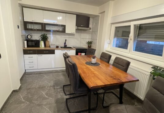 Prodaje se kuća u Bilju na placu površine 2064m2. Kuća se sastoji od kuhinje sa blagovaonicom, hodnika, kupaonice, ostave, dnevne sobe i dvije spavaće sobe. Ukupne površine cca 81m2. Uz kuću se nalazi podrum 15m2, garaža, ljetna kuhinja, ostava za alat, pušnica, uređeno ograđeno dvorište, voćnjak i vrt. Grijanje: centralno na drva. Plac se prostire na dvije čestice. Mogućnost gradnje kuće od 138m2.