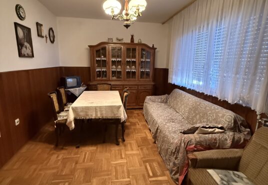 Prodaje se kuća u Petrijevcima na placu površine 2843m2. Kuća se sastoji od prizemlja i kata. U prizemlju se nalazi velika prostorija i sanitarni čvor (poslovni prostor), površine 134m2. Na katu se nalazi hodnik, kuhinja sa blagovaonicom (izlaz terasa), ostava, dnevna soba i dvije spavaće sobe, ukupne površine 134m2. Sveukupne površine 268m2. Ispod kuće podrum površine 75m2. Uz kuću je pripadajuće dvorište i vrt, površine 2709m2, pomoćna zgrada površine 30m2 i garaža površine 51m2. Orijentacije: sjever/jug. Potrebna adaptacija.